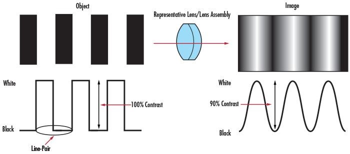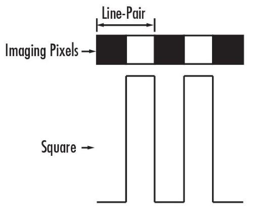 Resolution describes the ability of an imaging system to recover detail in a scene and is often expressed in lp/mm as the number of line pairs per millimeter, where a line pair is a sequence of a black line and a white line. This line pair per millimeter metric is also called frequency. The reciprocal of the frequency produces the distance in millimeters between the two resolved lines. For all imaging elements, the edges of perfect lines become blurred to some extent when imaging a resolution plate. High resolution images are those that exhibit a lot of detail due to minimal blurring, and conversely, low resolution images lack detail. In summary, resolution is the ability of an imaging system to distinguish details of an object.
